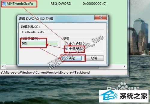 接着,双击刚才新建的“MinThumbsizepx”值,在出现的新窗口中将“基数”选为“十进制”,系统默认的预览窗口大小为230像素左右,您可以依此上下调整,现以500像素为例,将窗口放大,如图所示。