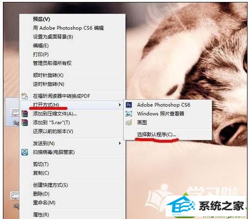 3、右键点击该文件打开菜单,选择“打开方式--默认程序”;