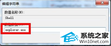 5、在弹出来的设置窗口中,将数值数据修改为explorer.exe,然后确定退出设置窗口即可。