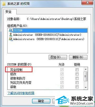 3、在窗口中,更改当前用户为“完全控制”,如图所示: